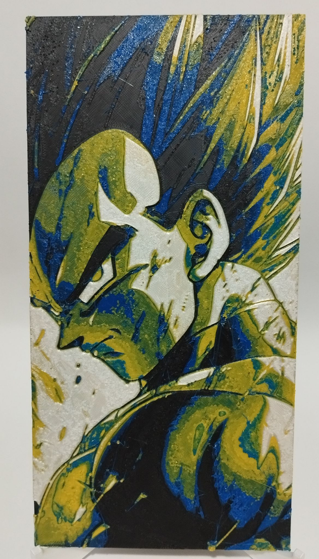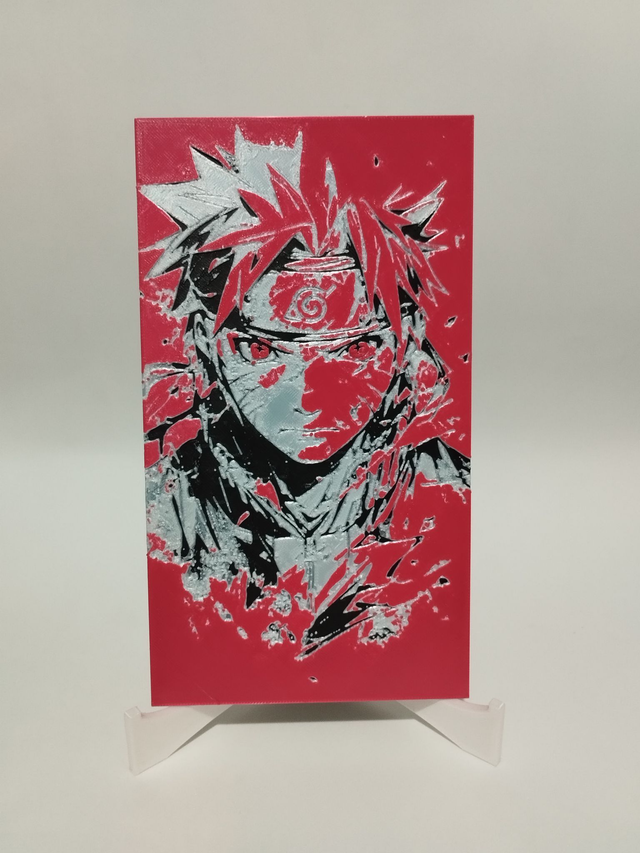 Com traços fortes e expressão intensa, este quadro representa um guerreiro em momento de poder máximo. A arte Hueforge em PLA destaca camadas e cores vibrantes, ideal para quem busca uma peça decorativa com impacto visual e referência à cultura pop oriental.